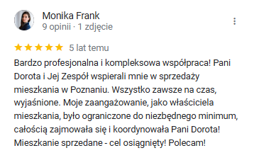Zadowolonych klientów kupujących i sprzedających świadczy o wysokim standardzie obsługi, który stawiamy na pierwszym miejscu przy każdej transakcji.